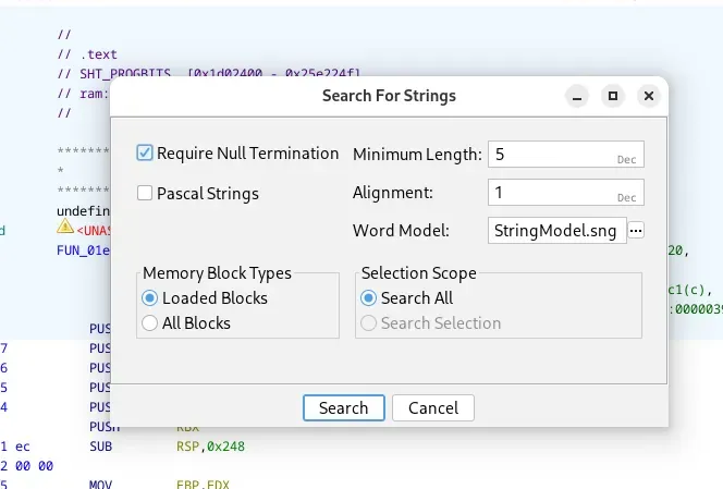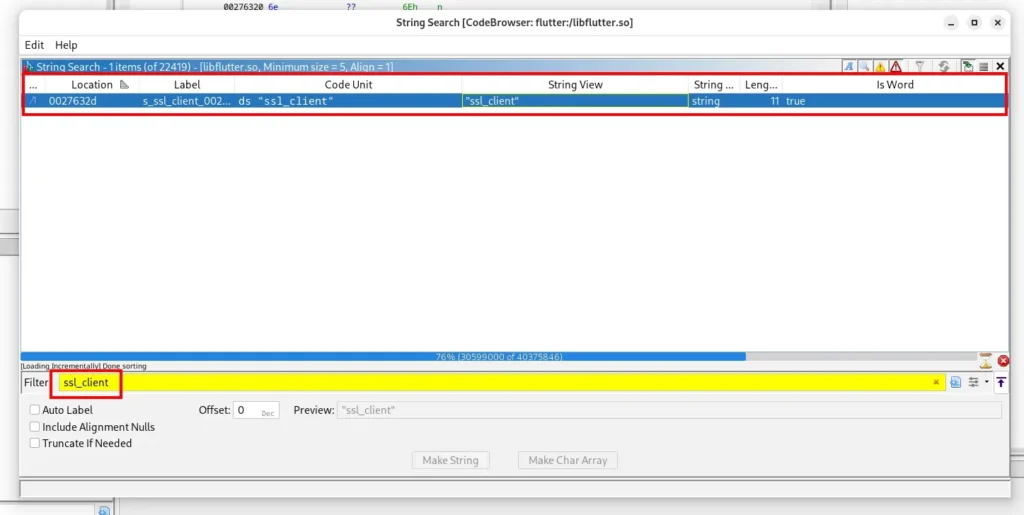 - Cari string “ssl_client” (Search → For Strings)