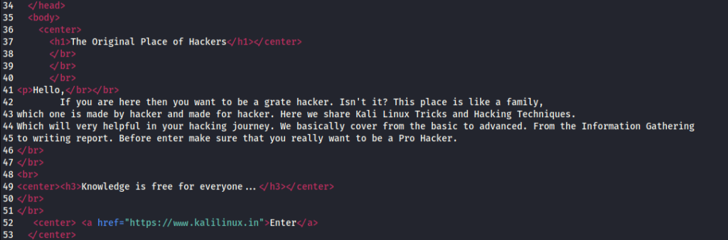 Kemudian kita edit berkas halaman web dan buat kode situs web sederhana untuk demo. Kita buka berkas html/php di mousepad atau editor teks lainnya.