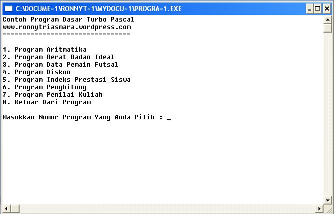 Paket Contoh Program Dasar Turbo Pascal terdiri dari: